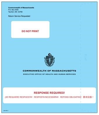 - Example of blue envelope to redetermine MassHealth eligibility